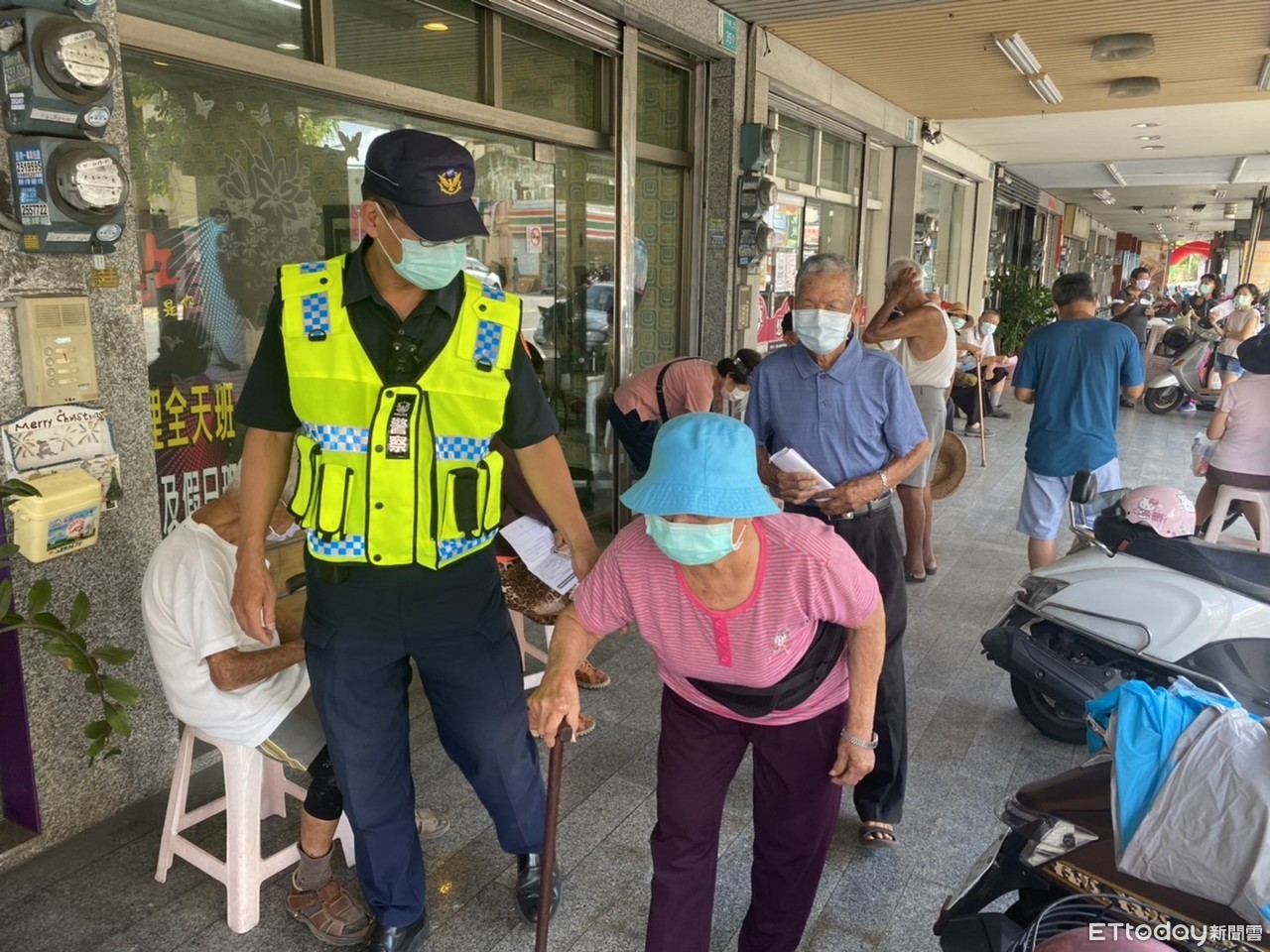 ▲台南市警三分局配合市府對高齡長者首波優先施打AZ疫苗,在現場扶助長者、維持秩序與安全,並加強犯罪宣導。(圖/記者林悅翻攝,下同)