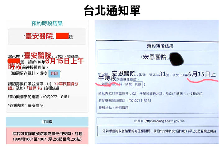 ▼北市預約疫苗通知單僅寫時段,沒有寫時間。(圖/台北市議員許淑華提供)