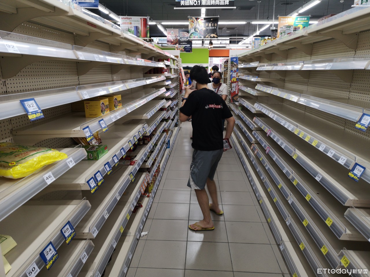 ▼雙北升三級警戒第一天,許多民眾到賣場搶購物資。(圖/記者湯興漢攝)