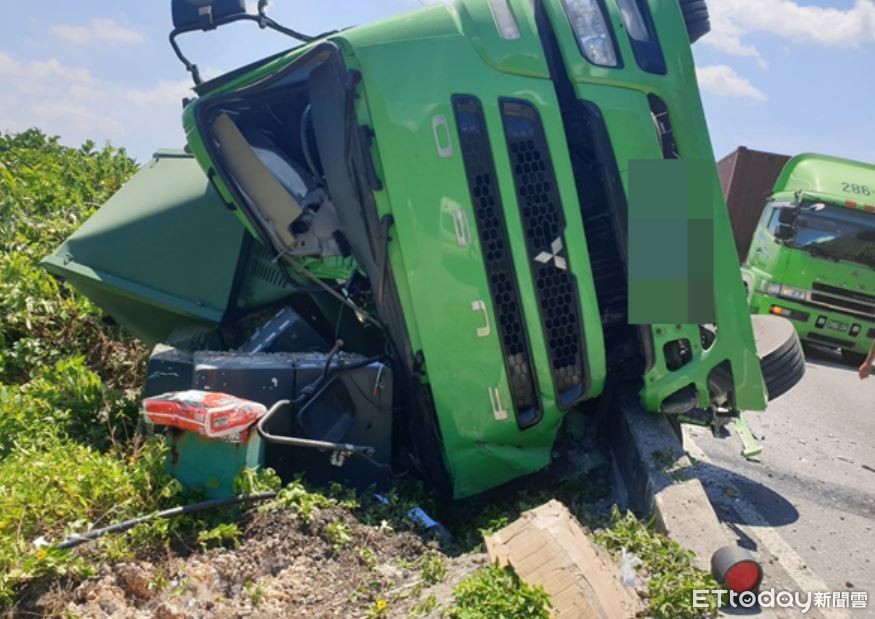 新北市瑞芳區台二線96公里處往基隆方向,16日上午10時24分發生一起車禍!一輛聯結車因不明原因翻覆,全車身番出水泥護欄,連路旁的台電變電箱也遭受波及,所幸39歲曾姓駕駛並無受傷,詳細事件發生原因及經過,仍有待進一步調查釐清。