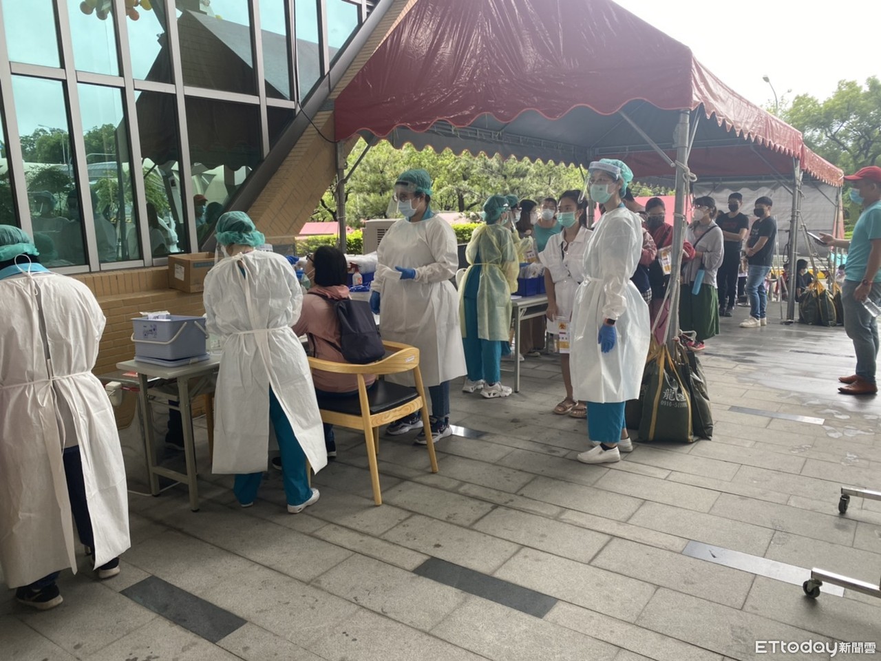 ▲東森集團中部700名員工今(16日)至台中榮總進行PCR檢測。(圖/記者白珈陽攝)