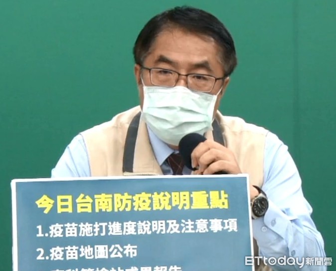 ▲台南市長黃偉哲指出,衛生局規劃力拼20前將首波AZ疫苗打完。(圖/記者林悅翻攝,下同)