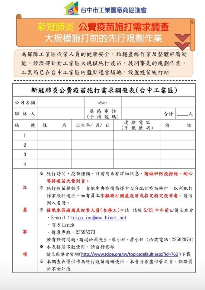 該陳情注意事項指出:「如有員工不願施打「國產疫苗」或「指定疫苗者」,請勿列入名冊」。江啟臣抨擊,這一句「注意事項」明列在經濟部所屬的台中工業區,各家廠商的調查中,這是一個引發民眾恐慌,讓人心驚膽跳的調查。