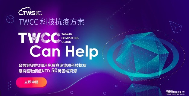 ▲台智雲TWCC科技抗疫,即日起至2021/7/31開放申請。