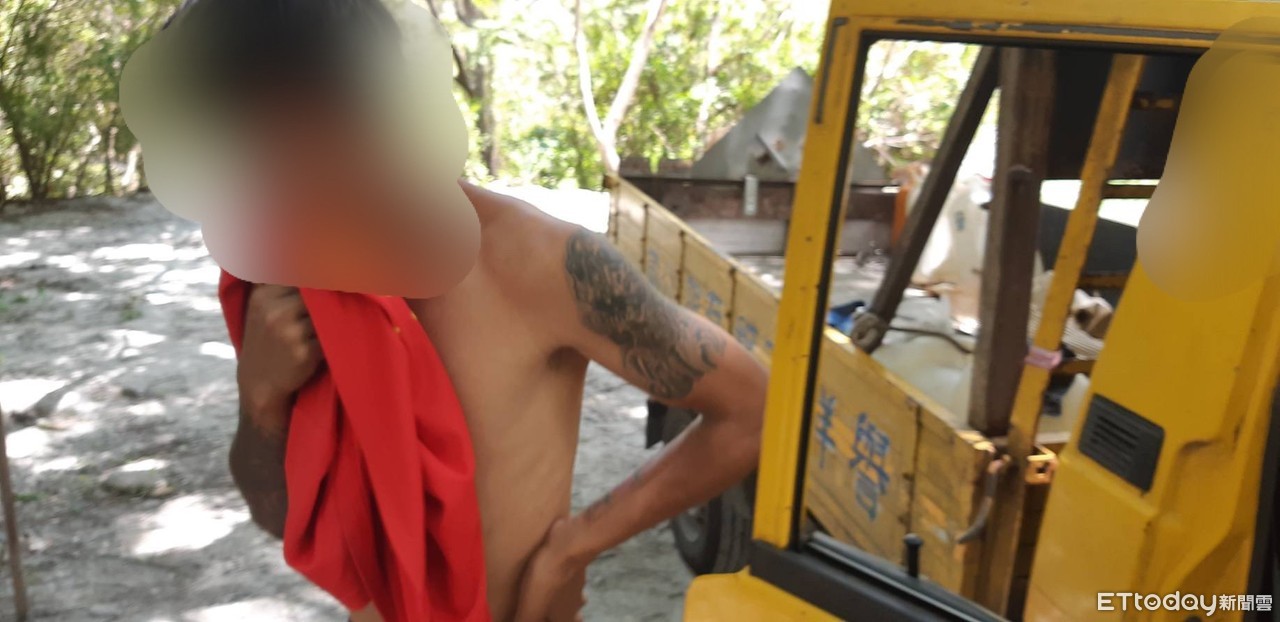 ▲台8線綠水停車場旁一群工人,其中一名男子未依規定配戴口罩。(圖/新城分局提供,下同)
