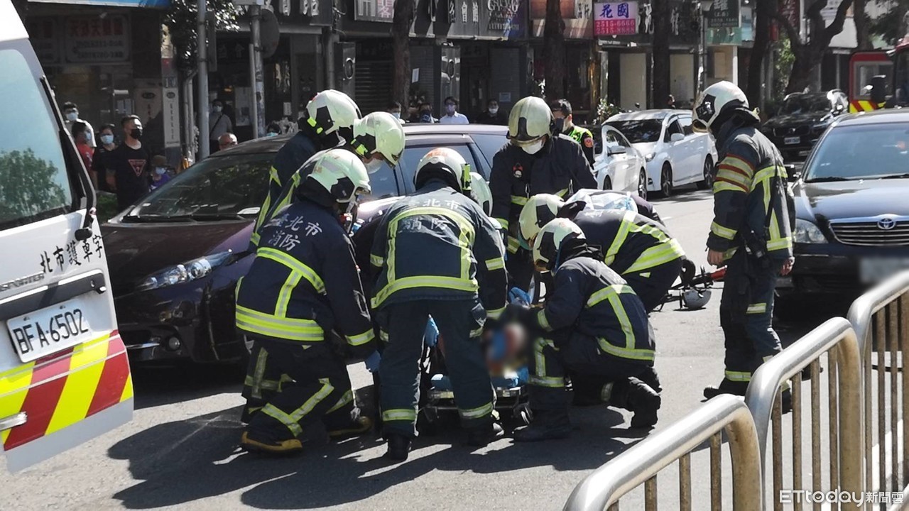 警方調查,36歲黃姓姓女子在18日下午3時許,騎車行經中山區民權東路二段,經過第一殯儀館前,因前方車輛突然減速,造成黃女煞車不及,追撞前方汪女轎車車尾,倒臥在地。