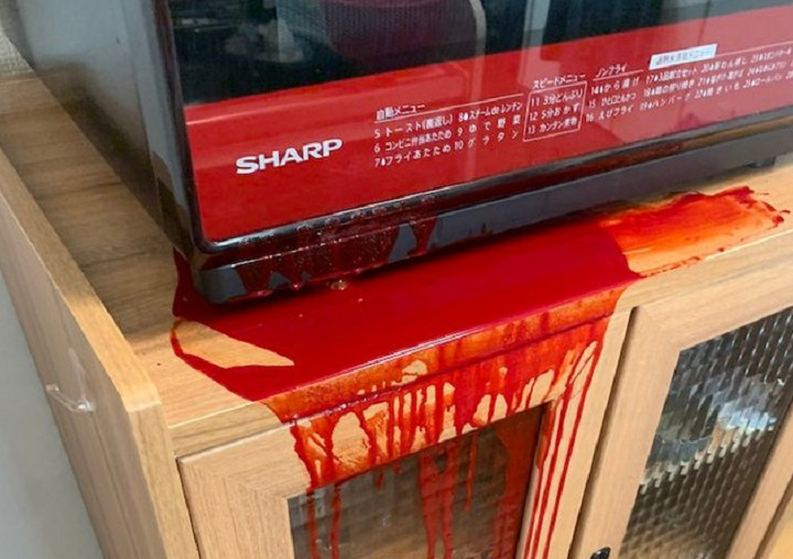 據日媒報導,日本網友麻子(Mako)最近在推特分享了一張她家中烤箱的照片,並寫道,「【噩耗】我的烤箱因為再也無法承受過勞工作而吐血了」。從照片看來,紅色烤箱的玻璃門處,有一大灘紅色液體滲出,還一直從烤箱流到底下的櫃子,整個場面就像是剛發生了一場流血事件。