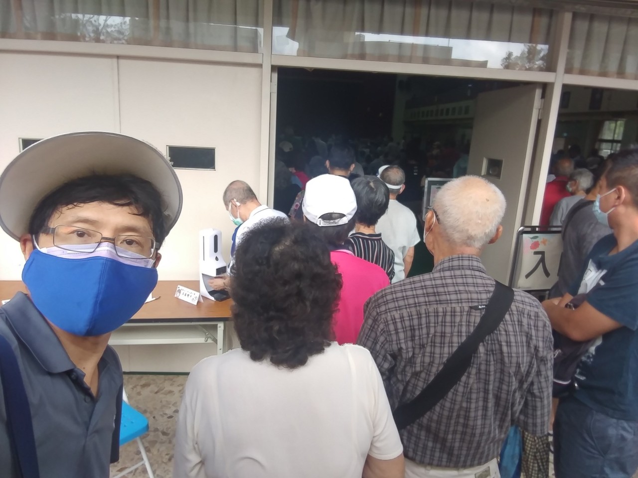 心理醫師沈政男今天上午發文稱,他帶長輩到台中市區某國中活動中心打疫苗,「裡面施打說是滑輪式,外頭排隊區卻是沙丁魚式,完全沒有防疫概念。」,「更有好多鄰長在那邊搶著跟老人家排隊要打疫苗。」「學日本只學到皮毛」就會這樣,其實打疫苗應該用預約與社區診所施打。