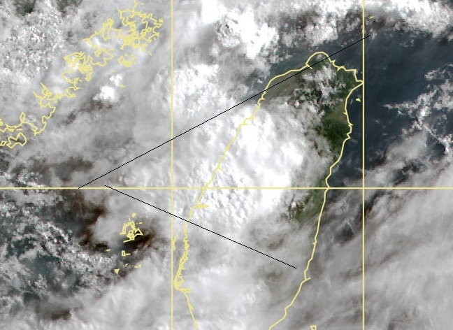 ▲鄭明典貼出衛星雲圖,並畫出兩條黑線提醒,中北部這塊對流區可能會持續久一些!(圖/翻攝鄭明典臉書)