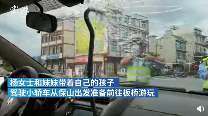 事件發生在13日18時50分左右,楊姓女子和妹妹帶著孩子行駛在杭瑞高速公路K2723附近時,一輛黑色汽車快速從右側通過,將路上一根約60公分長的鋼筋輾飛,接著她便目睹鋼筋快速飛來插入擋風玻璃。