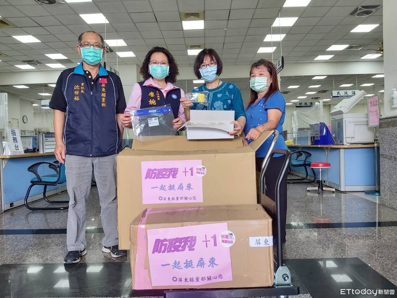 中國國民黨屏東縣部於今(23)日將中央黨部募得的防護面罩2000個與防疫護目鏡300個,捐贈給屏東縣警察局、屏東市等幾個公所,希望這些重要的防疫配備可給防疫第一線的清潔隊員和警察人員配戴,在疫苗尚未充足以前,能讓他們可以有更深一層的保障