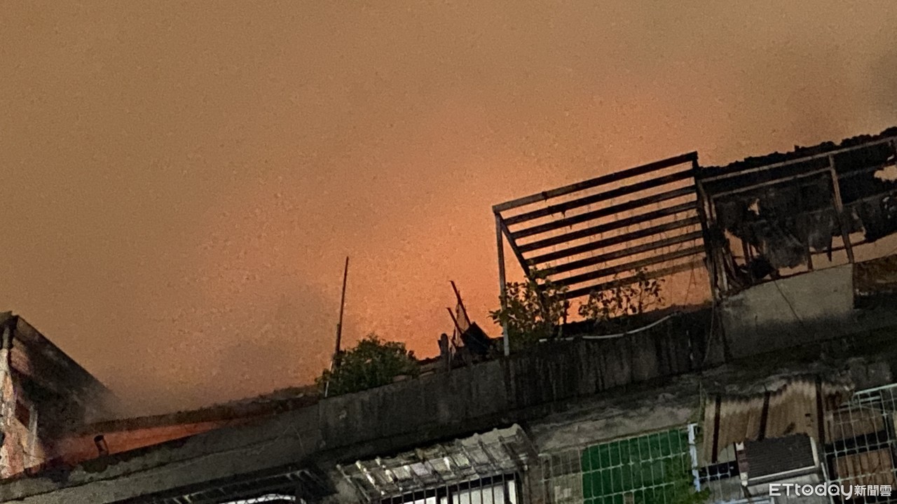 ▲萬華區西園路一棟公寓4樓頂加起火,火光照亮夜空。(圖/記者游宗樺攝)