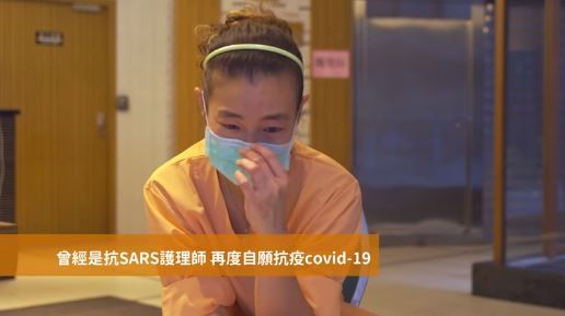 一名馬偕護理師,曾是抗SARS護理師,如今她再度自願抗疫,從5月21日集中集中檢疫中心開設以來,就一直堅守崗位。談到心路歷程,她忍不住落淚表示「不是我特別勇敢,我沒有時間害怕呀!我覺得真的是我沒有時間害怕,並不是我特別勇敢,而且我真的覺得,我當護理師我很驕傲,我很驕傲我是一個護理師,我也很喜歡我的工作,我只怕我做太少而已。」