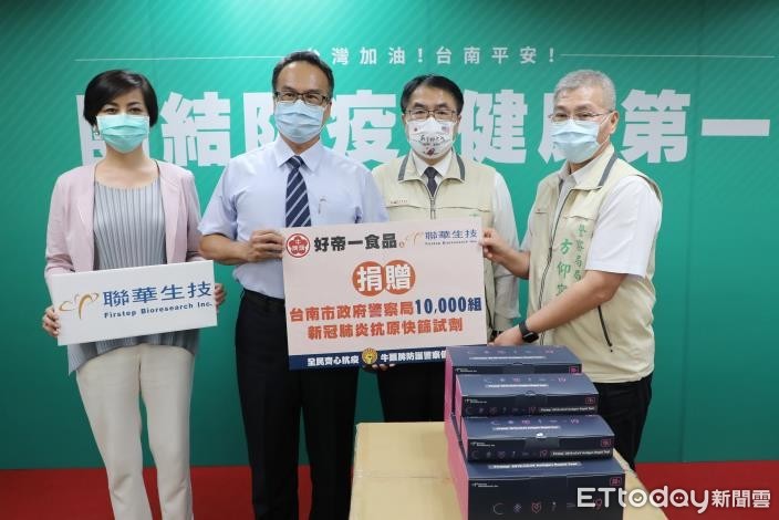 而位於台南科學園區內,聯華生技股份有限公司同為台南在地企業,深耕快篩試劑領域十數年,以投入於毒品檢驗之產品研發製造為主,長年來即提供警政系統打擊犯罪之用,董事長沈碧蘭表示,此次響應好帝一食品共同捐贈快篩試劑,希望拋磚引玉,謝謝在疫情圍繞時辛苦執勤保護市民的警員們。