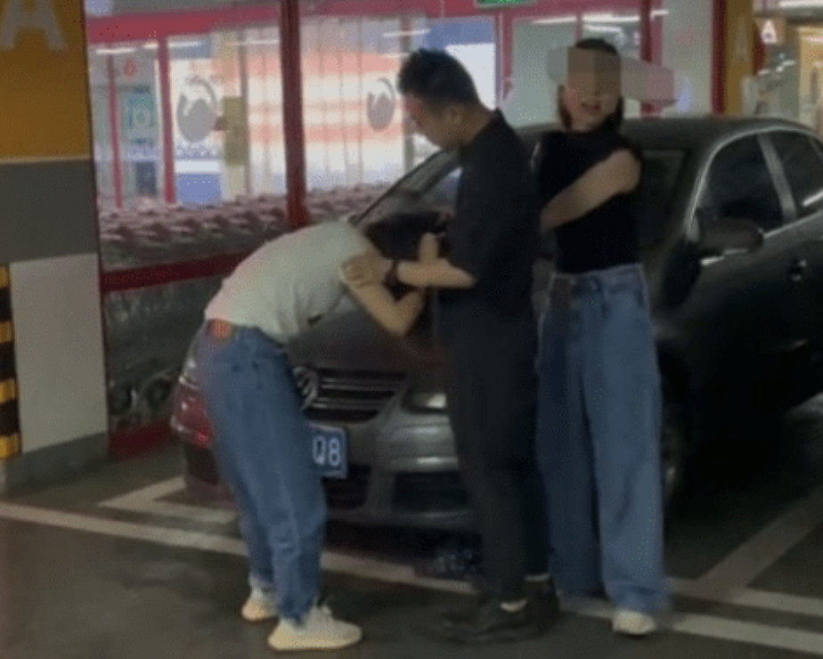 根據曝光的影片顯示,在百貨地下停車場,正宮和閨蜜一起,開著一輛白色BMW,在現場將丈夫的黑色BMW截停,之後下車將丈夫和小三堵在了現場。