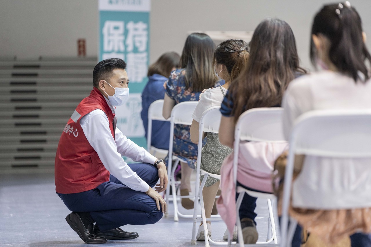 ▲新竹市長林智堅視察孕婦施打疫苗狀況。(圖/新竹市政府提供)