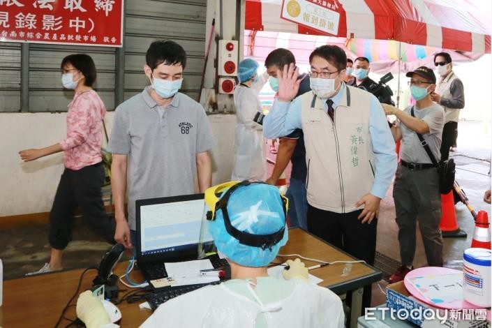台南市長黃偉哲特地於30日上午前往安南果菜市場感謝成大醫療團隊、衛生局、警察局及果菜市場人員為防疫共盡心力,讓篩檢能夠快速落實,避免感染鏈擴大。