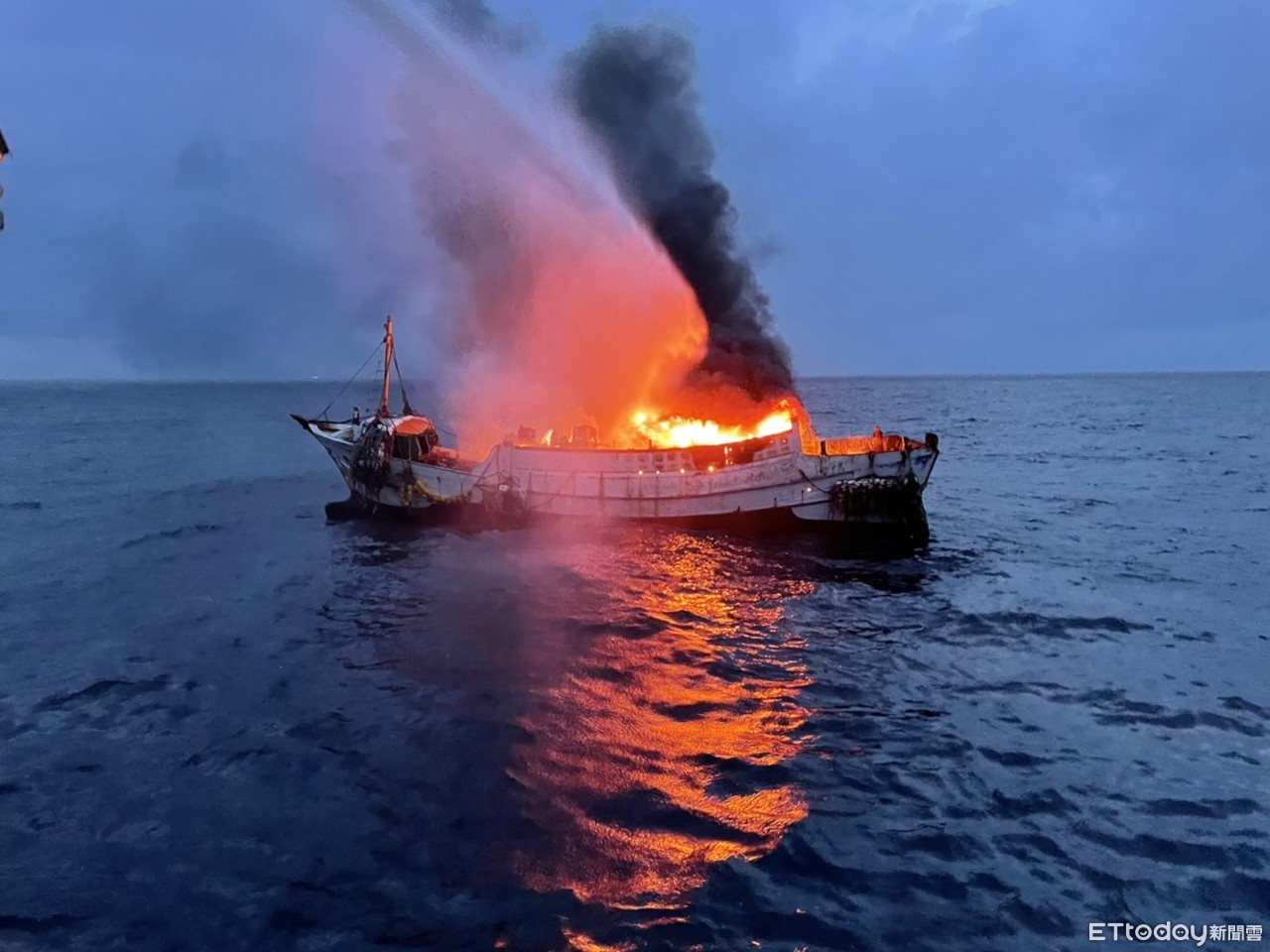 海巡人員表示,29日下午6時許接獲通報後,便立刻前往救援,所幸船上兩名船員緊急跳海求生後,被附近漁船救起,並無大礙。不過,船隻因為風勢助長,火勢多次復燃,海巡人員不斷以高壓水柱壓制火勢,才在30日凌晨3時40分將火勢撲滅,整整耗時了近10個小時。
