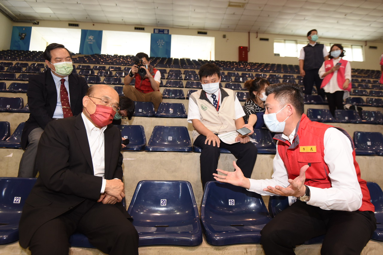 下午行政院長蘇貞昌、行政院發言人羅秉成、立法委員柯建銘、疾管署地區管制中心主任巫坤彬、新竹市馬偕醫院長翁順隆在新竹市長林智堅陪同下參訪孕婦專屬的「體育館疫苗施打站」,關心準媽媽們,見小孩也一同前來,蘇貞昌特別向小孩打招呼。林智堅則介紹,市府也為跟隨媽媽一起來的大寶準備小椅子、著色圖、玩具小車車等,小孩等候不無聊。媽媽能放心接種。