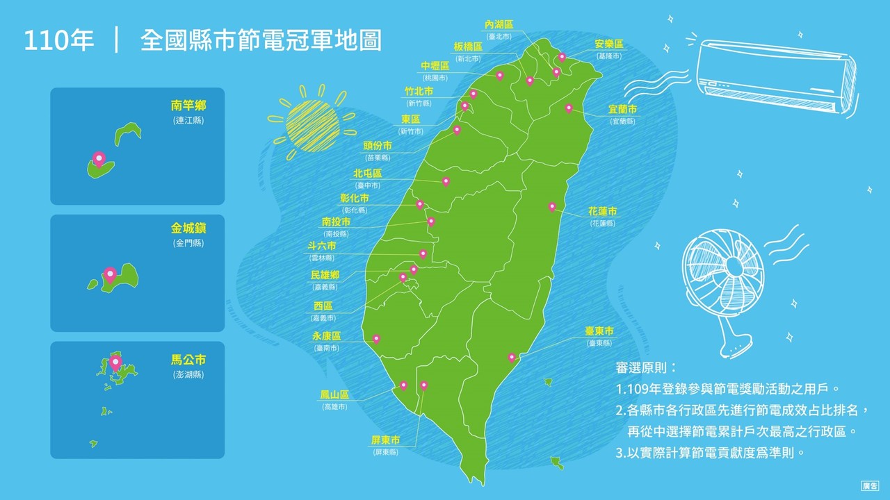 ▲2020「全國22縣市節電冠軍地圖」大數據調查。(圖/台灣電力公司提供;下同)
