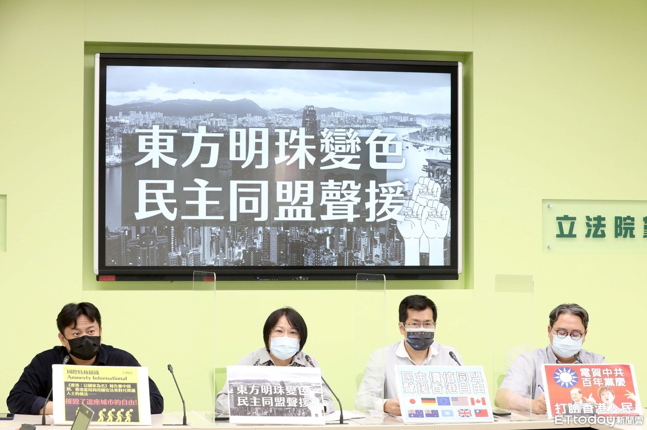 ▲民進黨團召開「東方明珠變色,民主同盟聲援」記者會。(圖/記者屠惠剛攝)