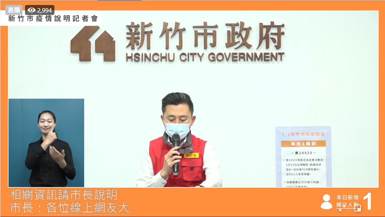 中央流行疫情指揮中心公布,新竹市今日7月1日新增1名COVID-19確診個案,案14925。新竹市長林智堅說明,案14925為30多歲女性,有新北市跟宜蘭縣活動史,出現症狀後PCR確診陽性,該案為竹科從業人員,該企業已啟動全面快篩604人,結果全數陰性,也已匡列同事、家人共13位接觸者居家隔離,相關竹市足跡已啟動公共場所全面消毒。