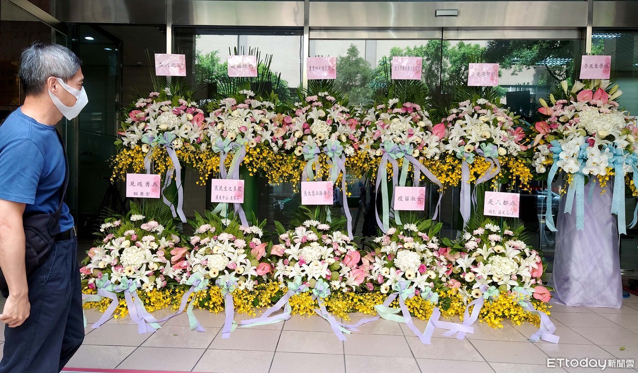 名嘴朱學恒日前送4盆花籃給中央疫情指揮中心,如今反遭匿名人士告發「妨害公務」。而今(1)日下午疾管署門口又擺滿花籃,其中2盆內容寫下「告死朱學恒、抓光羅智強」;名嘴羅友志也送了2盆花,內容為「疫苗淑女、是人都求」,並署名「順民羅友志」。