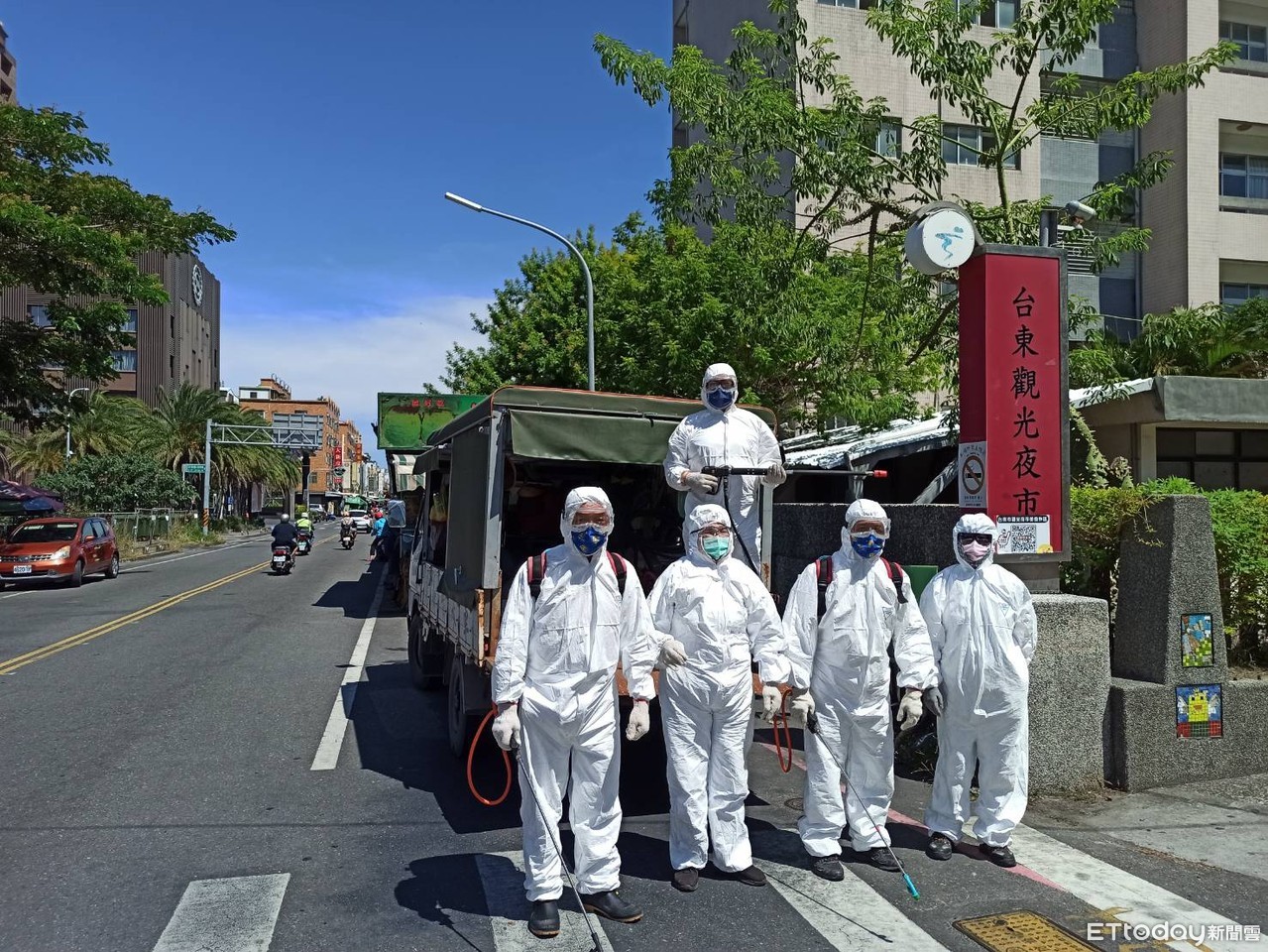 台東縣長饒慶鈴表示,在疫情期間,持續針對台東縣人潮聚集的公共場所331個熱點加強消毒防疫工作不間斷,夜市未恢復營業前每週至少由台東縣防疫消毒大隊1週2次清消,在夜市有條件開放後,將採營業前、收攤後及第2日一早,在鄰近商圈店家全面各再消毒1次,讓整個夜市環境受到防疫消毒的保護,避免任何可能的環境汙染傳播,也務必請至夜市採買民眾確實做到實名制登入並僅外帶及外送服務,大家一起守護台東零確診。