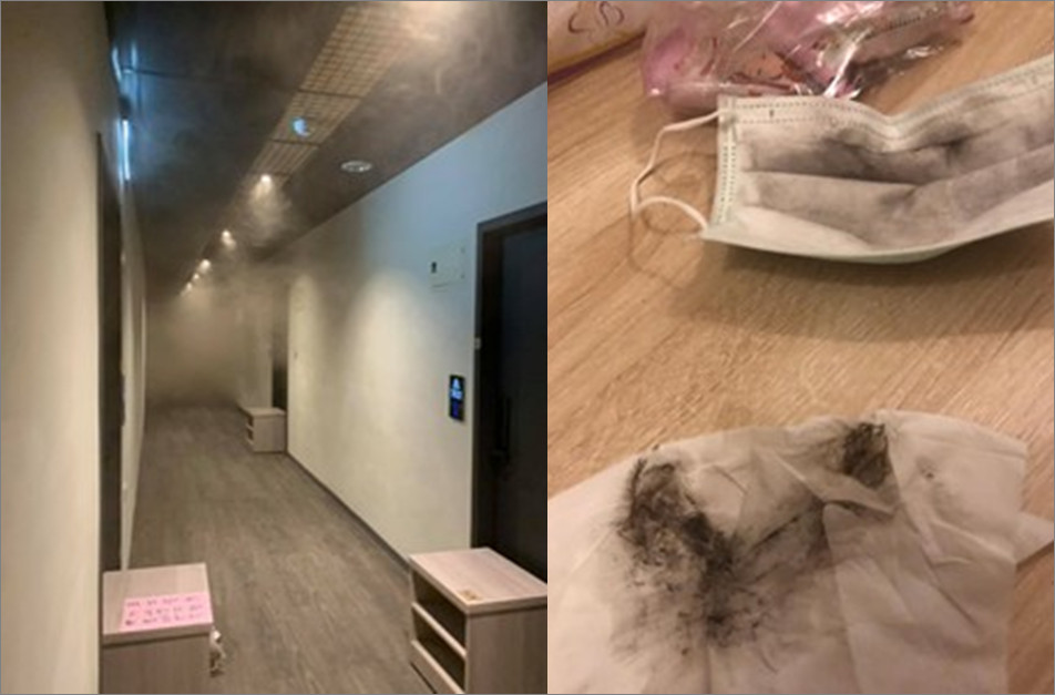 他說,過了半小時,一股燒焦煙味竄進房內,他感覺越來越不舒服,但還是不敢走出房門,怕違反防疫規定被罰,依舊相信飯店說是演習。直到8點多,走道上傳出不少躁動,房客開始紛紛逃生,他才意識到真的出事了,趕緊戴上口罩逃生。