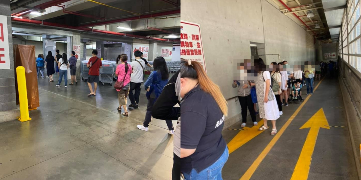 一名男網友在臉書《新竹爆料公社》透露,目前正在好市多新竹店,結果直擊地下室炸出一片人潮,可見民眾在黃線範圍內排隊,依工作人員指引,有秩序往前移動。