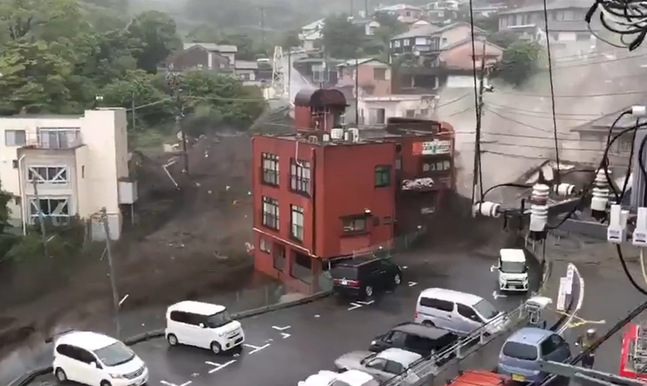 ▲日本靜岡縣熱海市伊豆山3日上午10時半許發生大規模土石流。(圖/翻攝自Twitter/半ケツ王子)