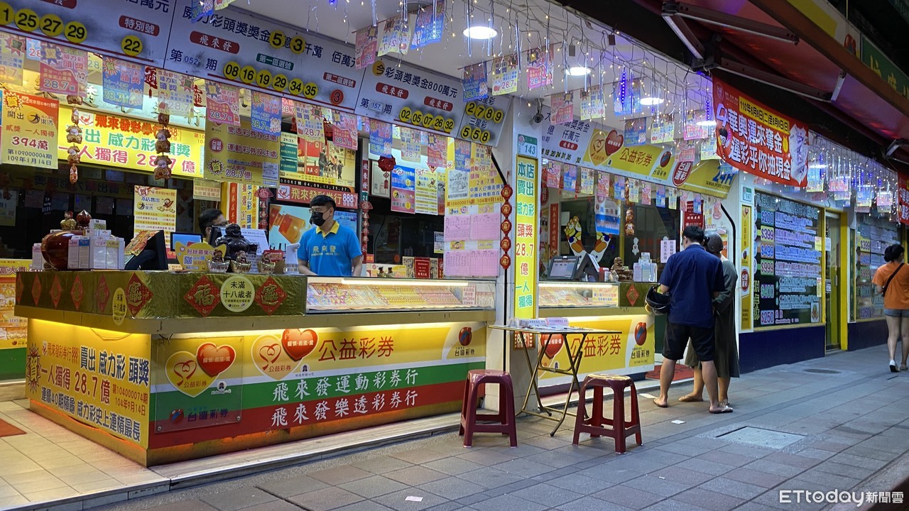 ▲士林夜市微解封後人潮依舊稀疏,就連平日熱門的「飛來發」彩券行都十分冷清。(圖/記者游宗樺攝)