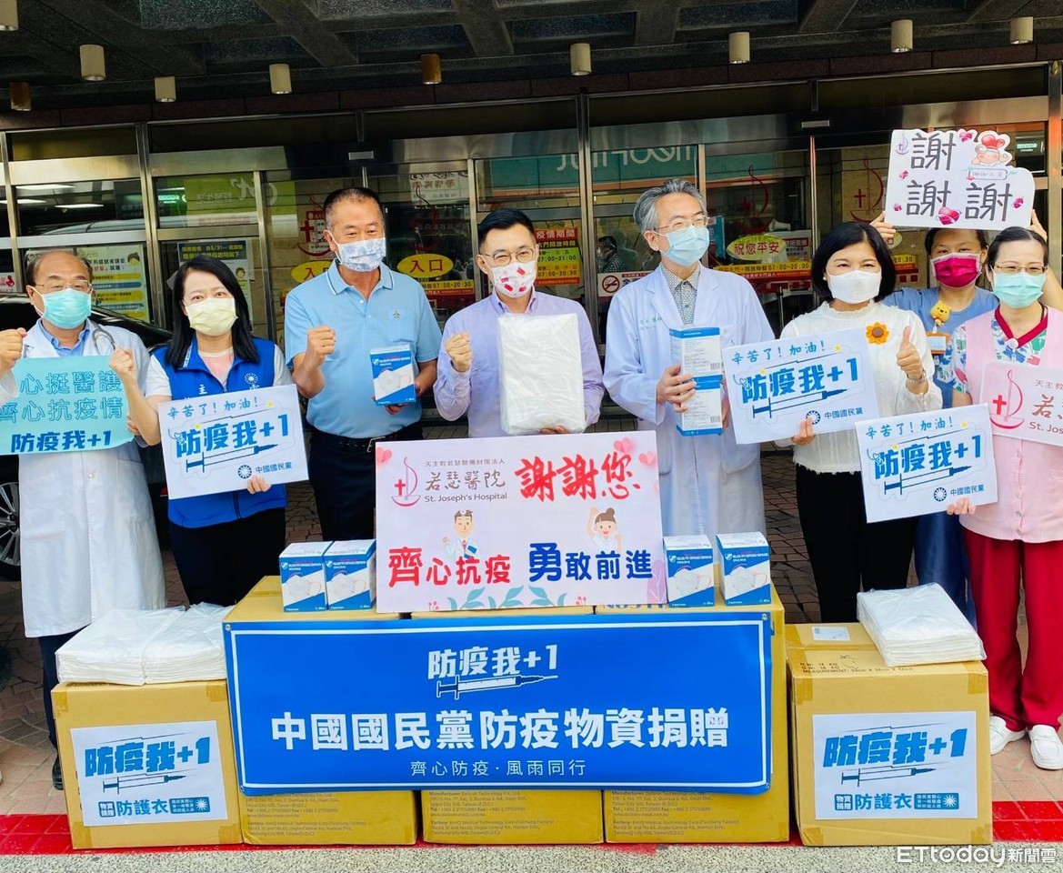 ▲國民黨主席江啟臣在雲林縣長張麗善、立委林文瑞、黨部主委許宇甄、縣議員李明哲、廖偉晴等人陪同下,至虎尾若瑟醫院致贈醫療物資。(圖/記者蔡佩旻翻攝)
