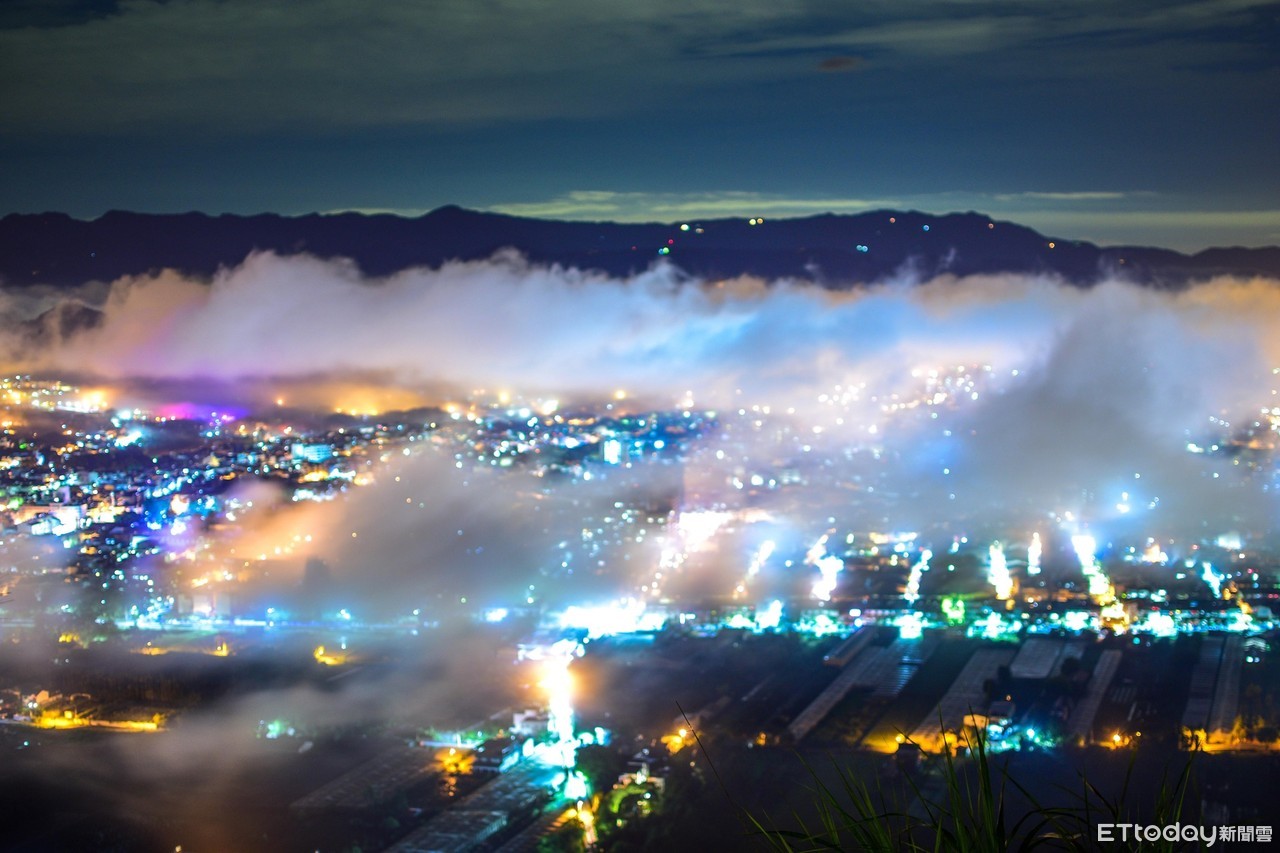 夏日雨量增多,除了紓解連月大旱,也使得山間雲氣在晝夜間和不同的光照條件下,呈現千變萬化的風采,讓愛好拍攝大自然景觀的玩家們收穫滿滿;可瞭望南投埔里鎮盆地全景的知名景點虎頭山,就被捕捉到雲氣反射萬家燈火後,呈現出的「琉璃光」美景,看過的網友們不禁驚呼:「太美了!」