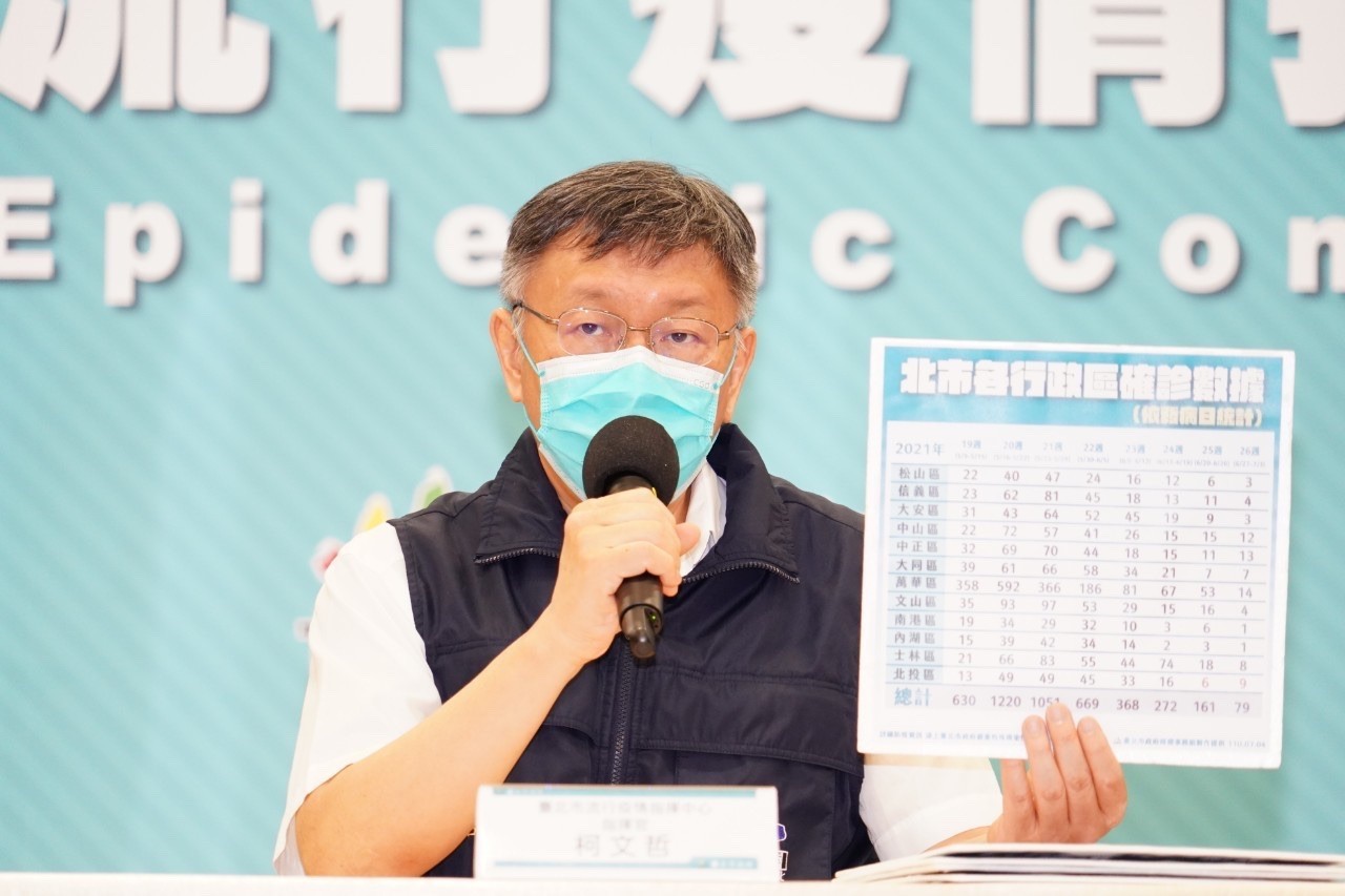台北市政府5日下午3時30分召開防疫記者會,由台北市長柯文哲、台北市副市長黃珊珊親自主持,並對開放7家醫院免費做PCR、虎林專案後續、南機場社區爆逾10例確診、柯文哲昨稱第七類是特權疫苗遭綠委批評、立委蔡壁如稱除非封城否則無法清零等問題進行回應。