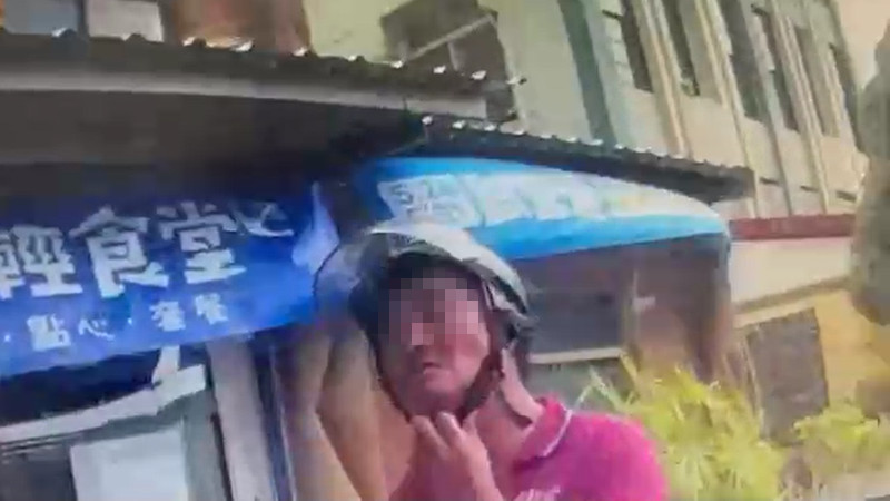 ▲莊男看到警察才將口罩從下巴拉回戴好 。(圖/記者洪靖宜翻攝)
