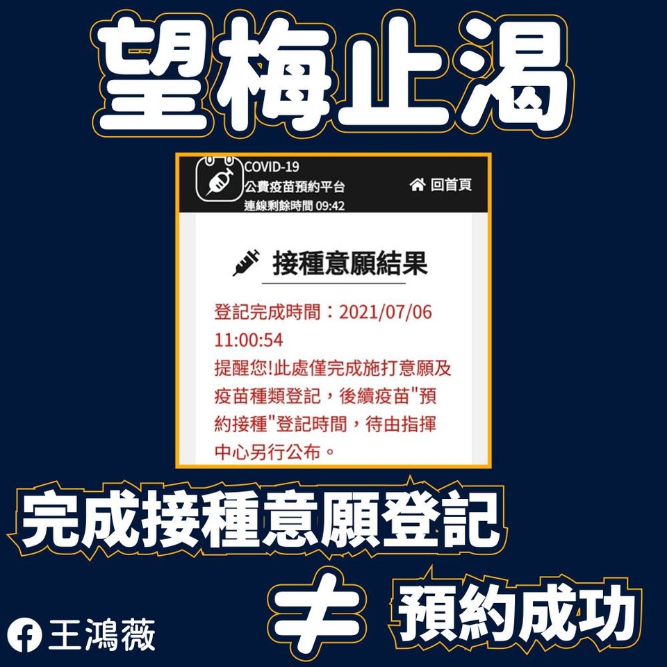 ▲王鴻薇酸疫苗接種預約登記僅是望梅止渴(圖/翻攝王鴻薇臉書)