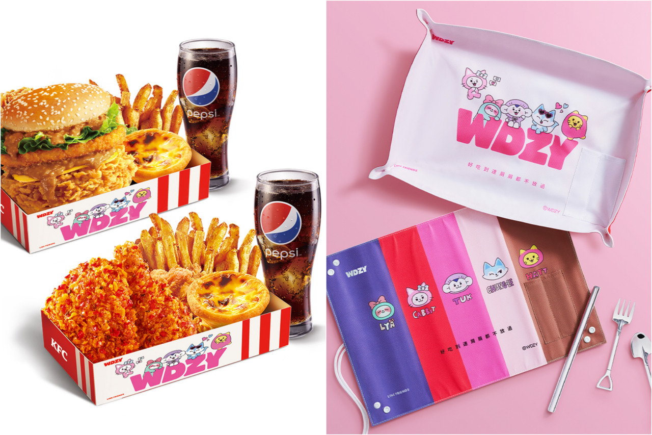 此次攜手超人氣角色WDZY推專屬包裝,再抽超萌合作周邊商品。WDZY是韓國女團「ITZY」與LINE FRIENDS合作,由5位團員創作屬於自己的個性化角色,包含HATT、LYA、TUK、CHUNG-EE、CABBIT,各有特色,肯德基是首度取得WDZY在台授權合作的品牌,季節性推出專屬限量XL包裝盒。