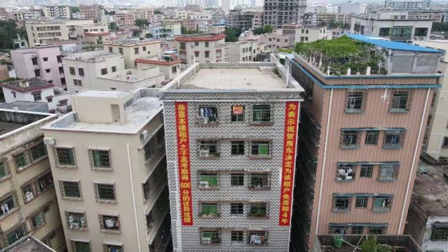 根據陸媒《網易新聞》報導,廣東省中山市的一處大樓住宅外,近日懸掛著兩條紅色的布條,上面寫著:「恭喜本樓租戶之子廣東高考取得608分的優異成績,為表示祝賀房東決定為該住戶免房租4年。」除此之外,大樓門口也高調的貼了一張相同內容的紅色海報。