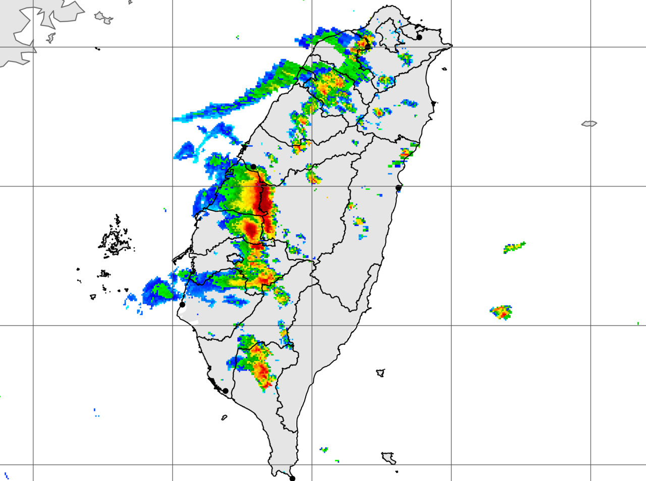 對流雲系發展旺盛,易有短延時強降雨,氣象局今(7)日發布大雨特報,南投地區及新竹以南山區有局部大雨發生的機率,請注意雷擊及強陣風。另外,氣象局也針對「台中市、彰化縣、南投縣、雲林縣」發布大雷雨即時訊息,持續時間至17時30分止。