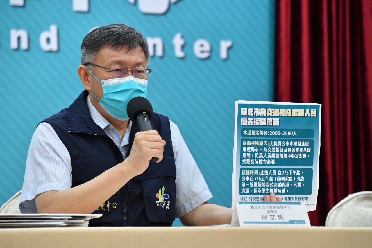 台北市政府7日下午召開防疫記者會,由台北市長柯文哲、台北市副市長黃珊珊、台北市副市長蔡炳坤親自主持,並對7家醫院免費PCR首日預約狀況、忠勤專案篩檢情形、幫非法移工打疫苗、醫師李秉穎稱專家會議從沒討論機組員居家檢疫3+11、白宮亞太總監不支持台灣獨立、總統蔡英文稱7月底全台疫苗覆蓋率達25%做回應。