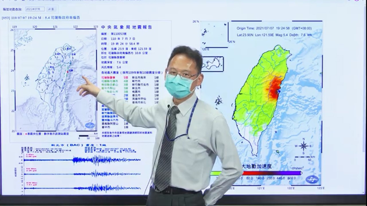 ▲氣象局地震中心主任陳國昌說明花蓮多起地震原因。(圖/中央氣象局)