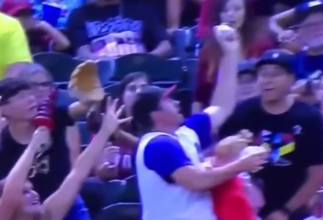 亞利桑那州鳳凰城一名父親日前帶著女兒,到球場觀看響尾蛇隊和巨人隊的比賽,當時他左手抱著還拿著奶瓶的女兒,右手拿著一杯啤酒,結果這時有一顆出界的棒球朝他飛來。他立刻放開左手的女兒伸手抓球,然後再馬上縮回來抱住正在下墜的女兒,右手的啤酒也只有灑出來一點點。