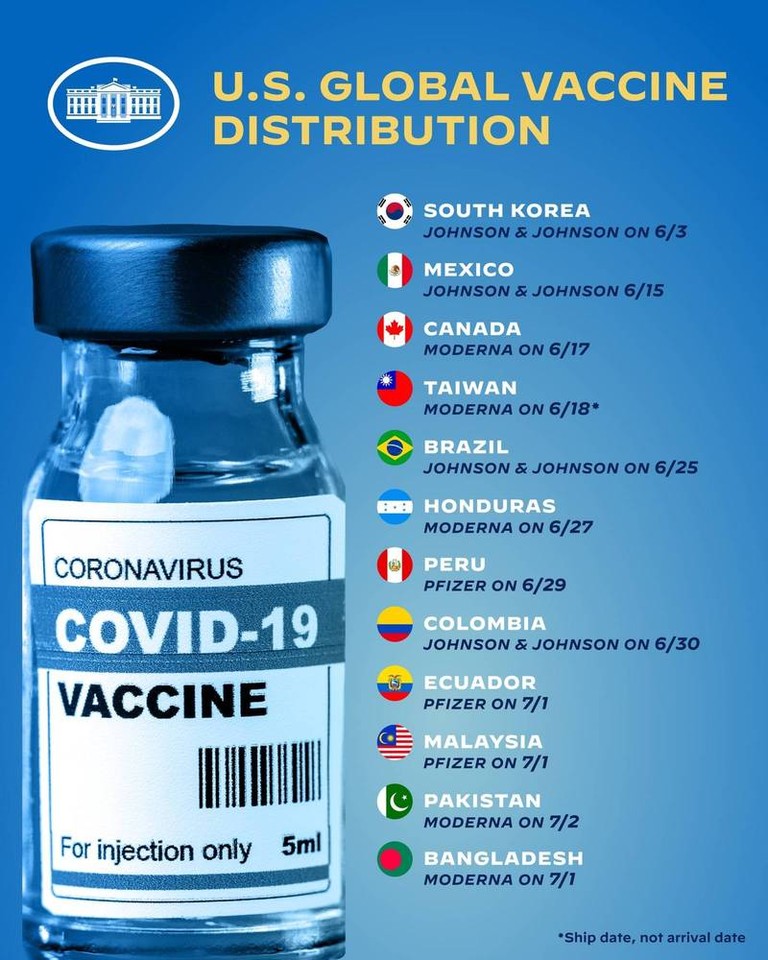 美國政府近期致力於捐贈疫苗,其中也包含贈與台灣的250萬劑莫德納疫苗,白宮新冠疫情應變小組(White House COVID-19 Response Team)於6日透過推特發文,美國目前運送共4000萬劑疫苗到世界多國,除了明言提及台灣之外,附圖更直接秀出中華民國國旗,沒想到不到2天,此篇貼文就已悄悄刪除。