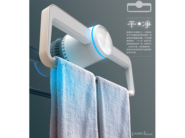生活童話在創意與設計的世界徜徉這麼久,很少能夠看到寫有中文的手稿,仔細研究後才發現,原來Puredesign是來自中國的新興設計公司,也因為是華人世界的驕傲,這款產品在命名時更巧妙地以產品兩大功能來發想,一是風乾、二是殺菌,結合一起就是乾淨,正好是整體設計品的唯一訴求。家中浴室毛巾總是有股異味嗎?時時更換,才能避免病菌上身!