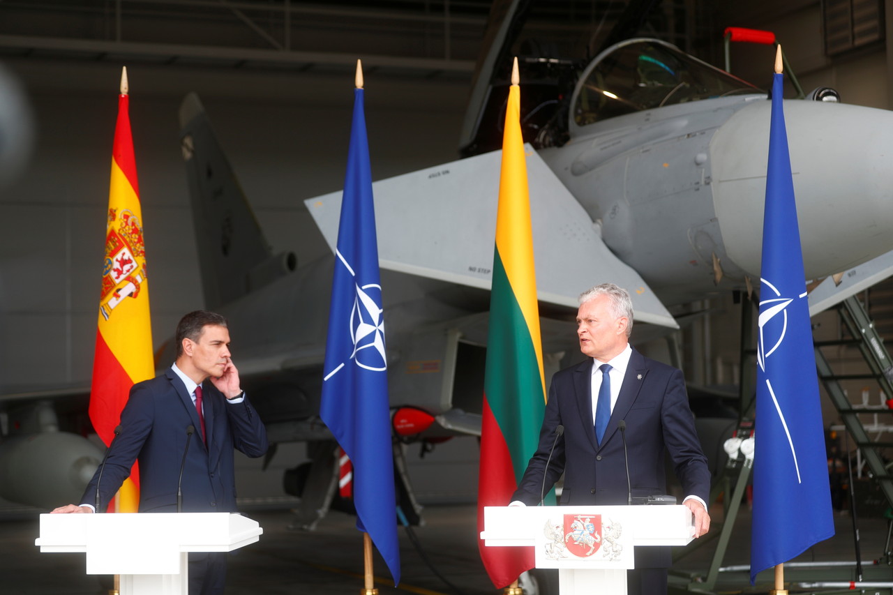 立陶宛總統瑙塞達(Gitanas Nausėda)8日與來訪的西班牙總理桑切斯(Pedro Sanchez)在空軍基地共同主持記者會,沒想到警報聲突然響起,2人身後的颱風戰鬥機必須緊急升空,攔截逼近波羅的海的俄國戰鬥機,記者會也被迫中斷。