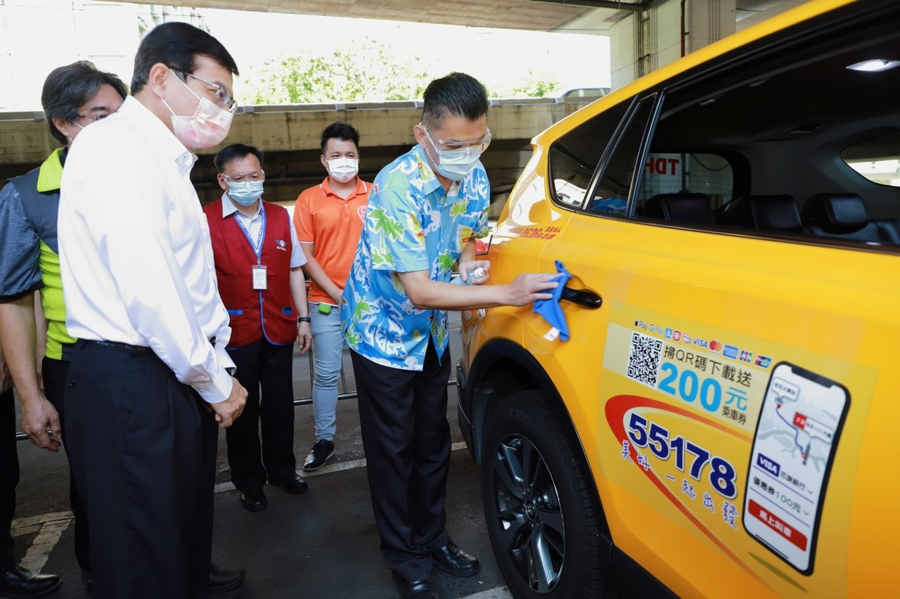 ▲計程車業者加強消毒作業,迎接微解封到來。(圖/交通部)