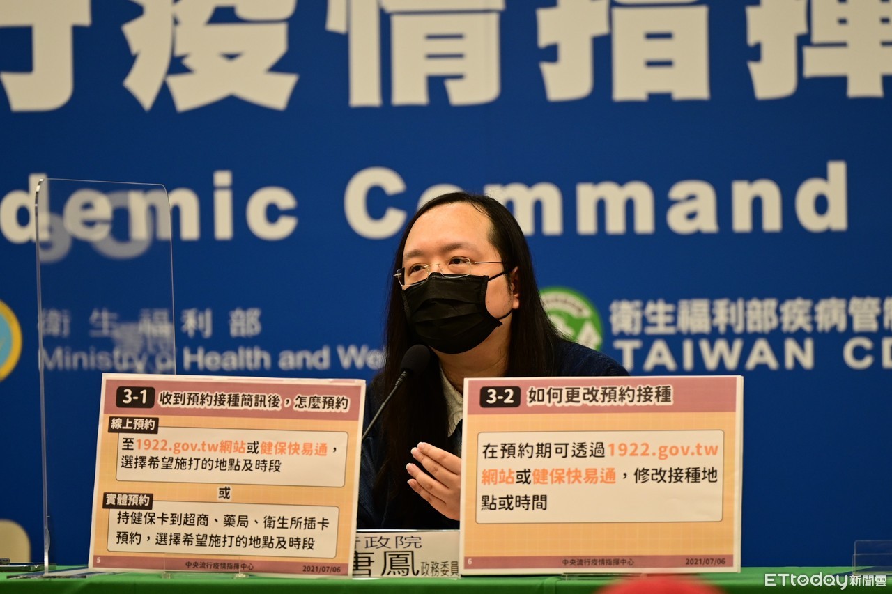 ▲唐鳳說明疫苗意願預約登記流程。(圖/指揮中心提供)