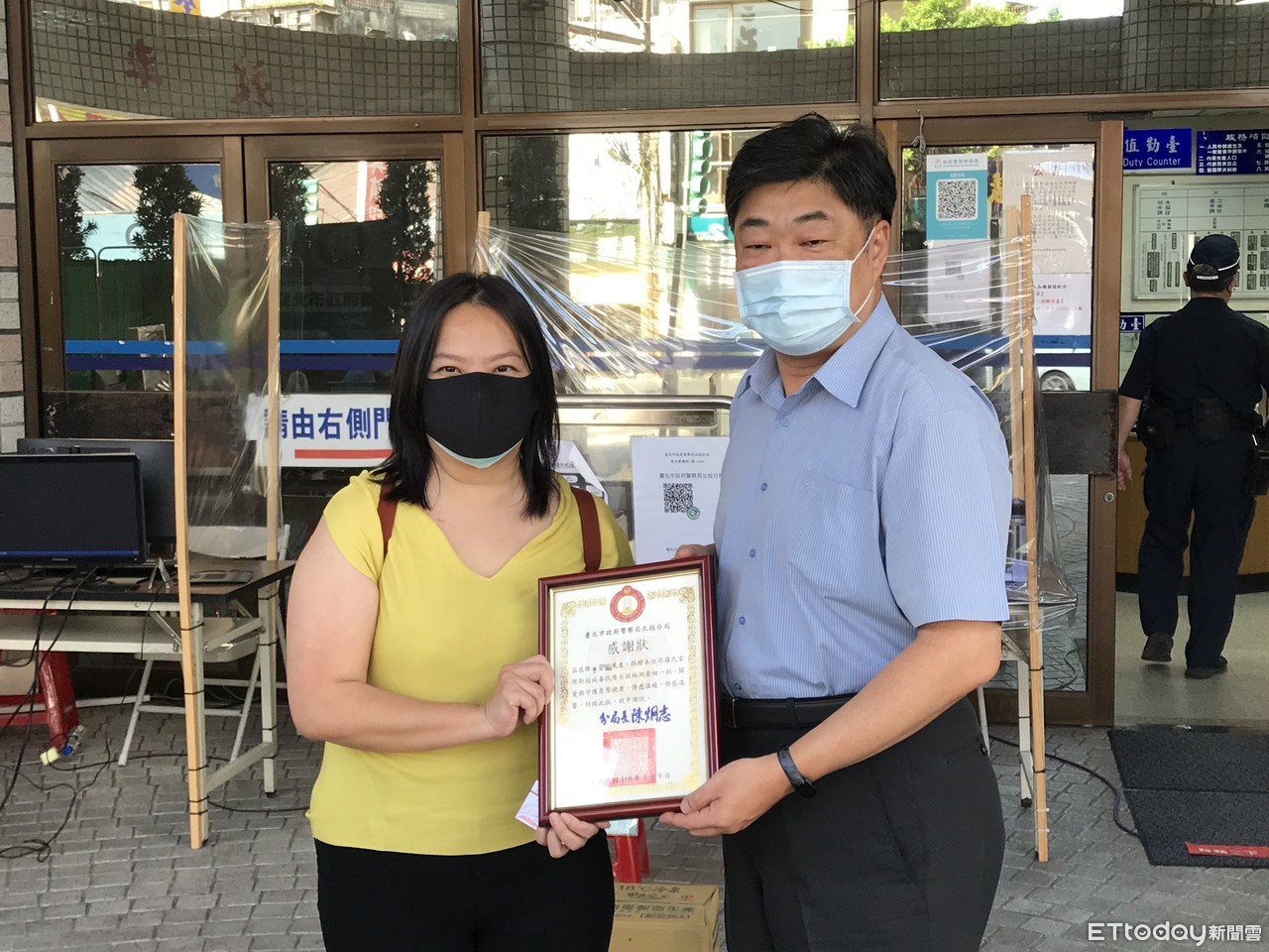 ▼由於王同學已出國留學,便由王媽媽代替將快篩劑捐給北投分局。(圖/記者黃宥寧翻攝)