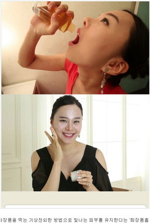 ▲韓國小姐裴素尹吞保養品加強美容效果。(圖/翻攝網路)